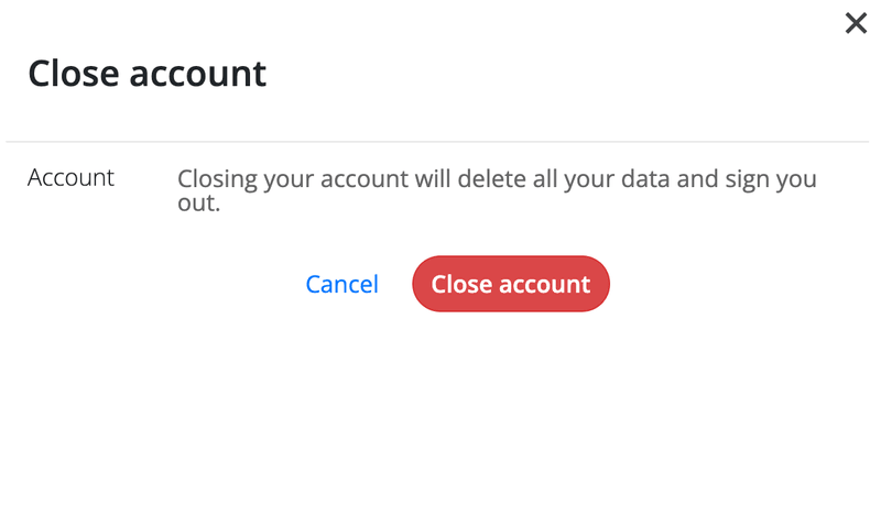 4. Confirm that you wish to close your account on the pop up window. Closing your account will queue your account for deletion, and will remove all your information, including templates you've created and videos you've exported. Account closure is not reversible. Once you've tapped on Close Account, you will be signed out and redirected to the Console home.