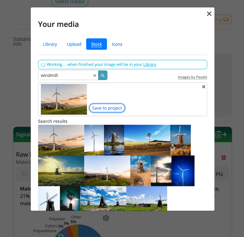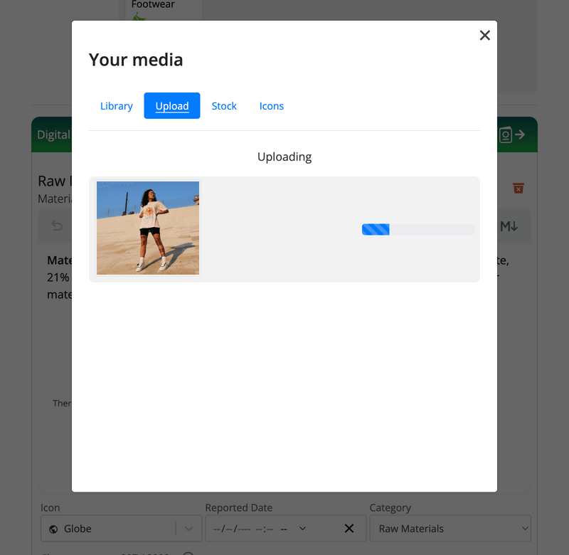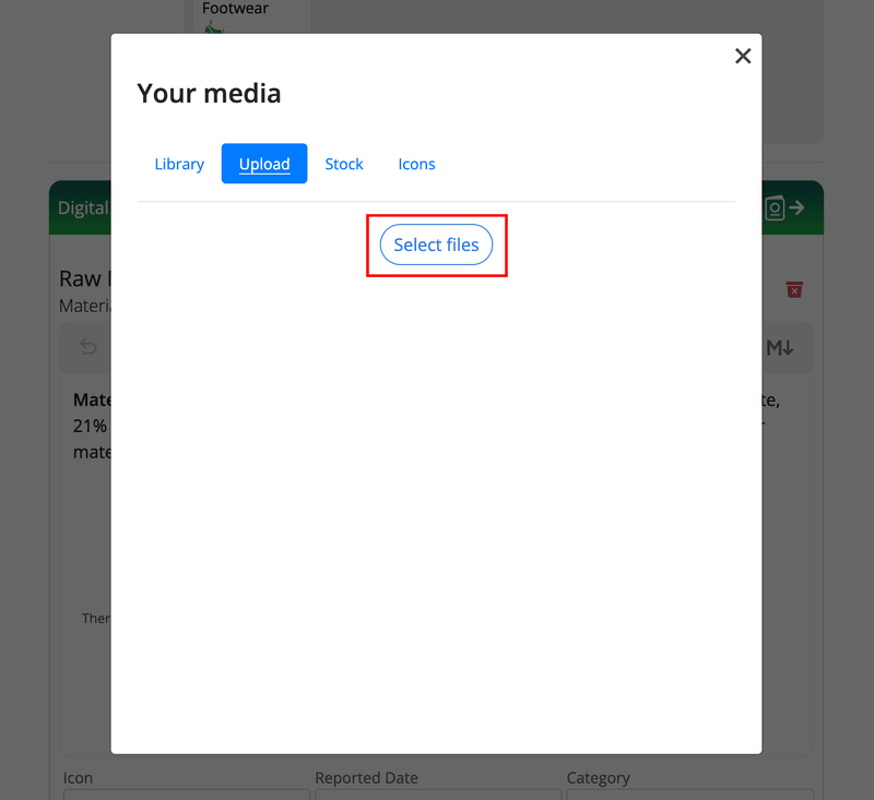 Note: The media library is separate from the My Media page. The My Media page contains media (images and video) that can be used in DPP minting (Blockchain-based DPPs and Cloud-based DPPs). The media library only supports images.