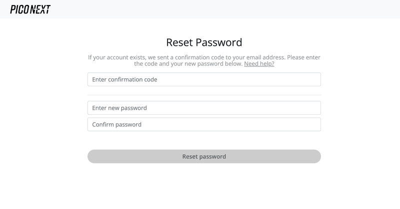 Once you've received your confirmation code, enter it. Then enter your new password, paying attention to the password requirements on the screen